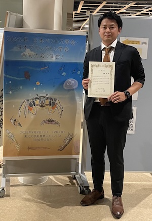 農学部の折田亮助教(水圏生命科学分野)が9月11日に開催された日本ベントス学会において、2025年度日本ベントス学会奨励賞を受賞しました。